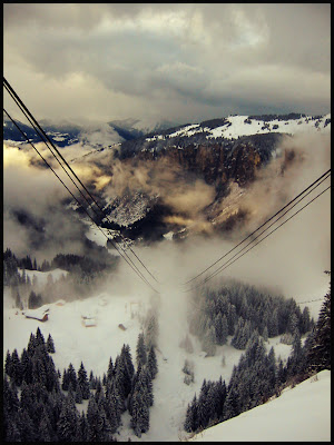 ah yes, dangling precariously from a few steel wires hundreds of metres above gigantic expanses of snow & rock does indeed sober you up after a night's fill of duty free stella!! nowt like it though. need to go snowbarding again asap.